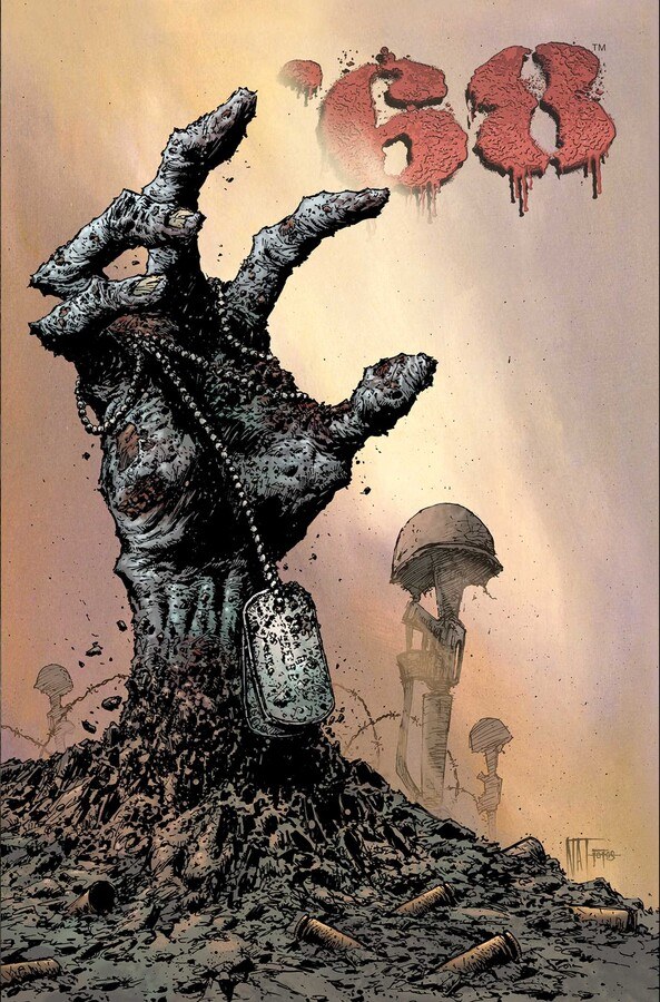 The zombies are back in the razorwire, as Meatgrinder Studios and Image Comics present the official ’68 Compendium Edition. This massive tombstone of a volume presents 752 pages of Vietnam zombie mayhem, collecting the full 30 issue comics run of the groundbreaking horror series!