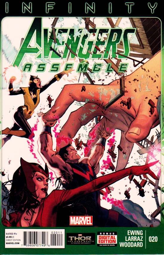 Infinity tie -in ... FEATURING THE UNCANNY AVENGERS! A giant naked man punches a Quinjet! An eight-year-old girl fights a centaur at the heart of an atom! Wonder Man's quest for peace! AND THAT'S JUST THE STUFF WE CAN TELL YOU ABOUT!