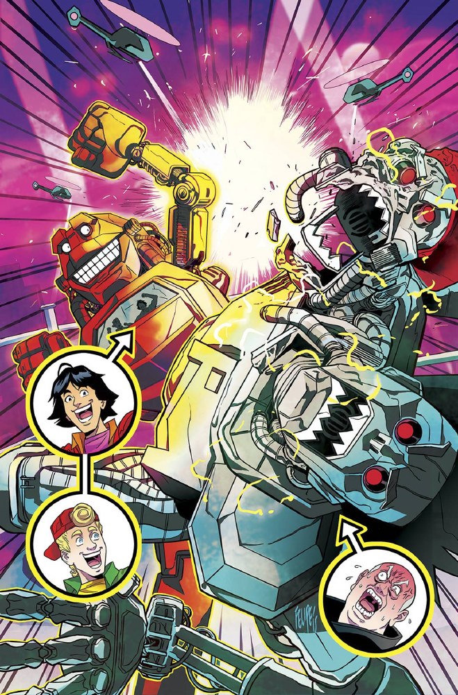 Final issue! Bill and Ted face off against Chuck De Nomolos in the future he controls for an epic Battle of the Bands to save the future of mankind! Features a back-up story by Brian Joines (Secret Identities) and Bachan (Rocket Salvage) about Princesses Elizabeth and Joanna going medieval on some troublesome rocker chicks from the future.