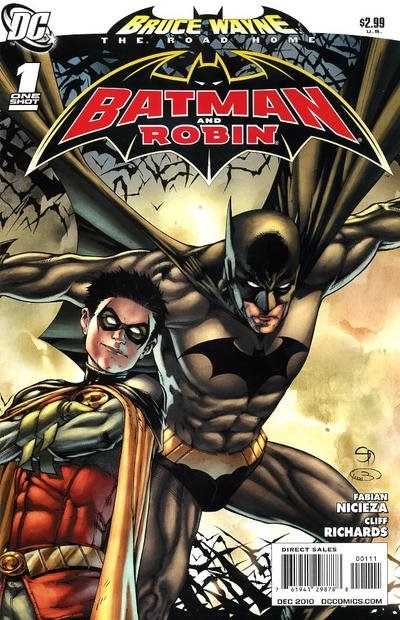 BRUCE WAYNE - THE ROAD HOME kicks off here as Dick Grayson and Damian Wayne rush to quash a damaging news item that could threaten the secret identities of the entire Bat-family! And as if that weren't enough to occupy their time, their father figure, Bruce Wayne, has returned... ONE-SHOT On sale OCTOBER 6 32 pg, FC $2.99 US