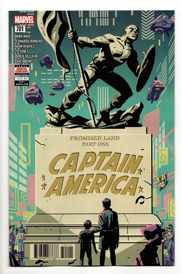 PROMISED LAND Part 1 The year is 2314, and the grandson of Steve Rogers lives in the utopian America of which his ancestor dreamed. The legacy of Captain America has been realized but something sinister lies beneath the surface! Leonardo Romero (HAWKEYE) joins Mark Waid for this very special look into the tomorrow of Captain America, featuring guest contributions from notable artists past and present! Rated T+