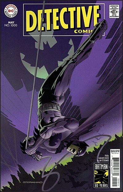 After 80 years, it's here-the 1,000th issue of DETECTIVE COMICS, the title that literally defines DC! This 96-page issue is stacked with an unbelievable lineup of talent that will take you on a journey through Batman's past, present and future...plus a sensational epilogue that features the first-ever DC Universe appearance of the deadly Arkham Knight! But who is under the mask? And why do they want Batman dead? The incredible future of Batman adventures begins here! Will have decade appropriate trade dress