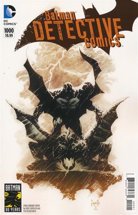 After 80 years, it's here-the 1,000th issue of DETECTIVE COMICS, the title that literally defines DC! This 96-page issue is stacked with an unbelievable lineup of talent that will take you on a journey through Batman's past, present and future...plus a sensational epilogue that features the first-ever DC Universe appearance of the deadly Arkham Knight! But who is under the mask? And why do they want Batman dead? The incredible future of Batman adventures begins here! Will have decade appropriate trade dress