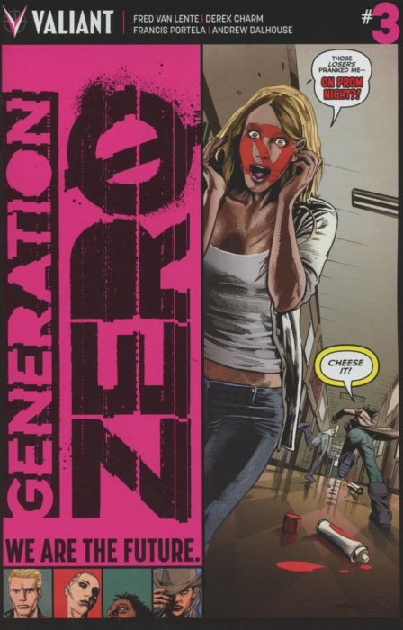 Generation Zero came to Rook, Michigan to investigate a strange death...and the clues have led them into the halls of an even stranger high school! But only one person knows what really happened to Keisha Sherman's tragically deceased boyfriend: Rook High's reigning queen bee! Now, this reformed squad of walking warheads will have to forgo their usual military tactics...and wage a psychic infiltration into the mind of Rook's most popular teenager! But, as they experience the truth through her eyes, what even darker revelations might spill forth about a town where murder, deception, and deceit lurk behind every picket pence? Out of the pages of HARBINGER WARS, Project Rising Spirit's tempestuous team of super-powered radicals is about to get slayed by the bell - courtesy of New York Times best-selling writer Fred Van Lente (IVAR, TIMEWALKER) and red-hot artists Francis Portela (FAITH) and TBD!