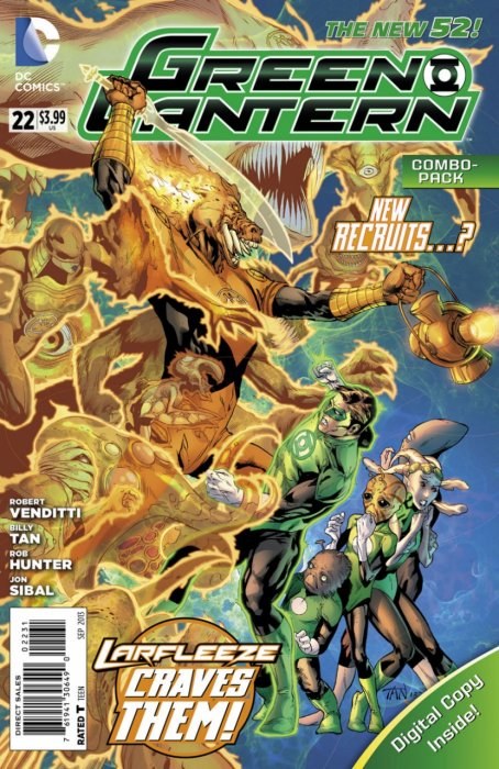 Larfleeze arrives on Oa to find the Corps at their most desperate, while Hal is forced to throw new Green Lantern recruits into a battle they might not win! And don't miss the birth of a brand new threat. This issue is also offered as a combo pack edition with a redemption code for a digital download of this issue.