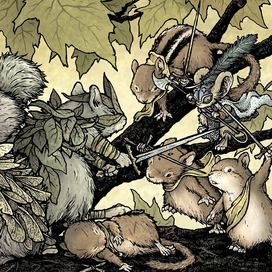 Gather 'round in the June Alley Inn for more mouse tales. Dustin Nguyen (Batman: Li'l Gotham) tells the story of a dying raven, while Kyla Vanderklugt (Jim Henson's The Storyteller: Witches) spins a tale of lovely and brave mouse dancer. And C.M. Galdre (Duelist) and Nicole Gustaffson (Nimasprout) tell the story of a town whose protective walls have fallen.