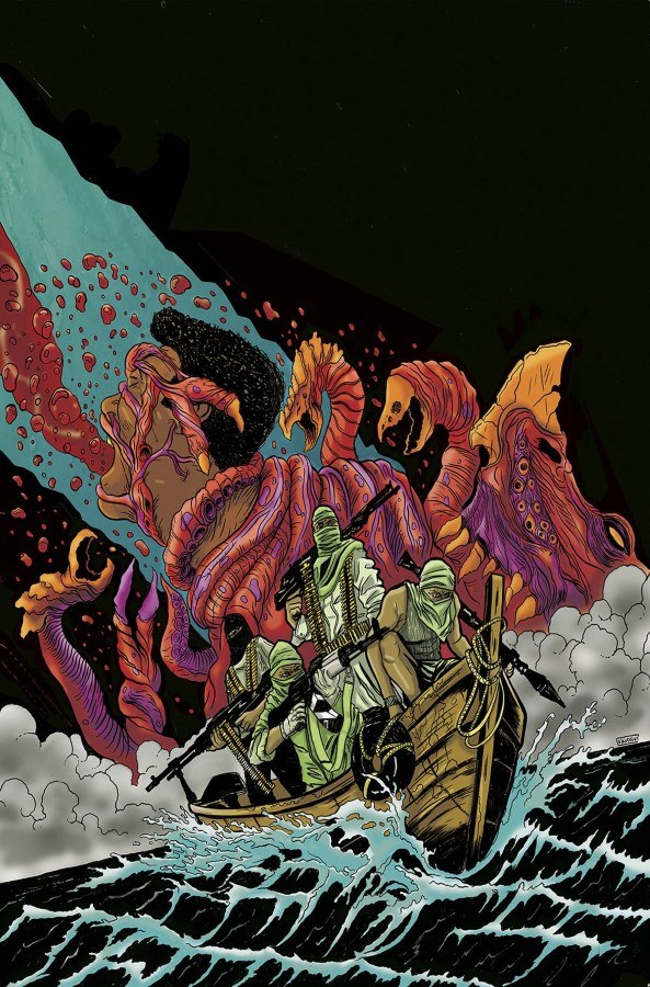 WHY WE LOVE IT: Swifty Lang gave us a whole new look at werewolves with Feeding Ground, a terrifying tale packed with social commentary. When he told us he'd teamed up with newcomer Skuds McKinley for a story of horror on the high seas, we were all in. WHY YOU'LL LOVE IT: BOOM! Studios and Archaia have been at the forefront of the horror comics revival, with titles like Feeding Ground, Curse, and Clive Barker's Next Testament. Plunder is the next step in that evolution, as fans of Captain Phillips and The Thing will enjoy this mix of current events-inspired adventure and supernatural terror. WHAT IT'S ABOUT: After facing off with an illegal Chinese vessel, a gang of Somali pirates tries to board what they think is a research vessel, only to find themselves in the midst of a massacre. As their worst nightmares become reality, the 14-year-old boy who went from translator to reluctant pirate not only becomes the key to survival, but must decide for himself how far he is willing to go in the name of self-preservation.