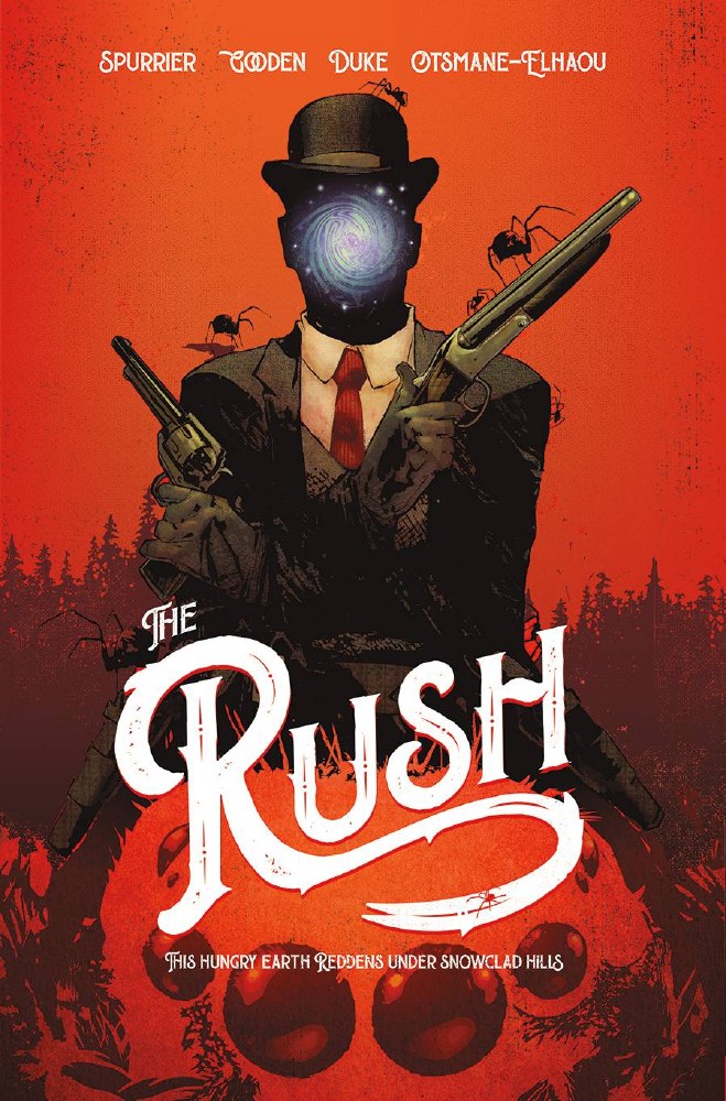 This Hungry Earth Reddens Under Snowclad Hills. 1899, Yukon Territory. A frozen frontier, bloodied and bruised by the last great Gold Rush. But in the lawless wastes to the North, something whispers in the hindbrains of men, drawing them to a blighted valley, where giant spidertracks mark the snow and impossible guns roar in the night. To Brokehoof, where gold and blood are mined alike. Now, stumbling towards its haunted forests comes a woman gripped not by greed, but the snarling rage of a mother in search of her child... From Si Spurrier (Way of X, Hellblazer) and Nathan C. Gooden (Barbaric, Dark One) comes THE RUSH, a dark, lyrical delve into the horror and madness of the wild Yukon. Collects the entire series. For fans of The Terror, Fortitude, Coda, and Moonshine.