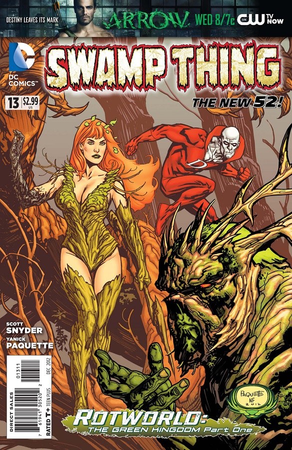 'ROTWORLD: THE GREEN KINGDOM' begins! Swamp Thing learns the truth of how the Earth fell to the Rot as seen in this month's issues of ANIMAL MAN and FRANKENSTEIN: AGENT OF S.H.A.D.E. Guest-starring Poison Ivy, Deadman and The Parliament of Trees!