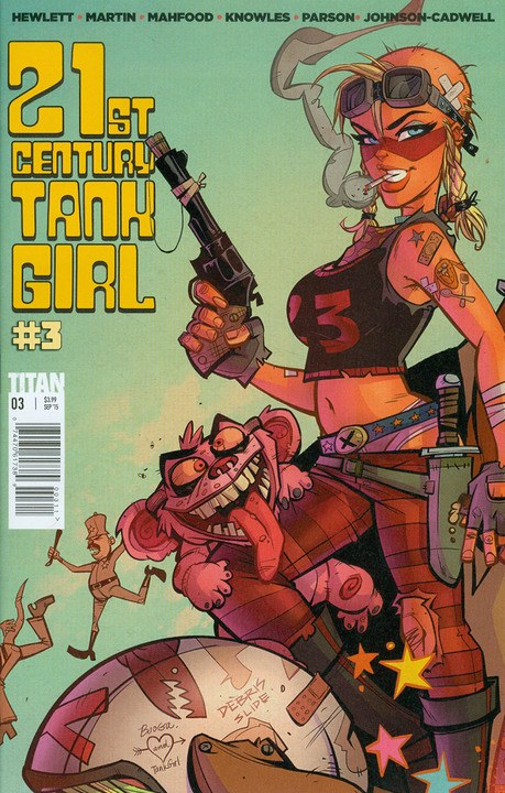 Shove this up your gun-turret! After a 20 year time-out, the phenomenal Jamie Hewlett (GORILLAZ) is leaping back on the Tank Girl wagon, re-teaming with series co-creator Alan Martin to bring you a whole new take on the foul-mouthed, gun toting, swill-swigging hellion! Positively turgid with strips, pin-ups, poems the usual balls-to-the-wall bedlamism, with brand new contributions from Hewlett, Martin and the cream of the Tank Girl art community, get ready to sacrifice your last shred of sanity for the stupendous final issue of 21st Century Tank Girl!